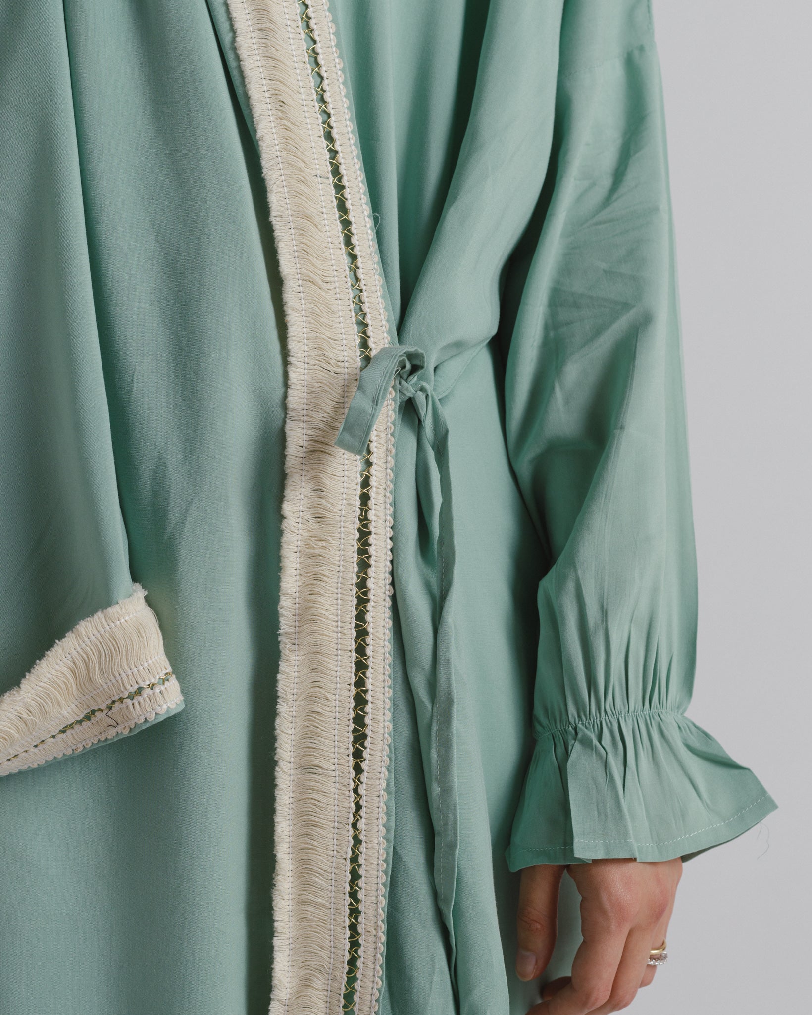 Sakinah Wrap Prayer Set – A timeless blend of comfort and elegance. Designed for ultimate flexibility, this prayer set allows you to wrap and adjust it according to your personal preference. Whether you prefer a snug fit or a flowing drape, it offers both coverage and ease, making it perfect for prayer at home or on the go. Crafted from soft, breathable fabric - Scarf is attached to the prayer set.
